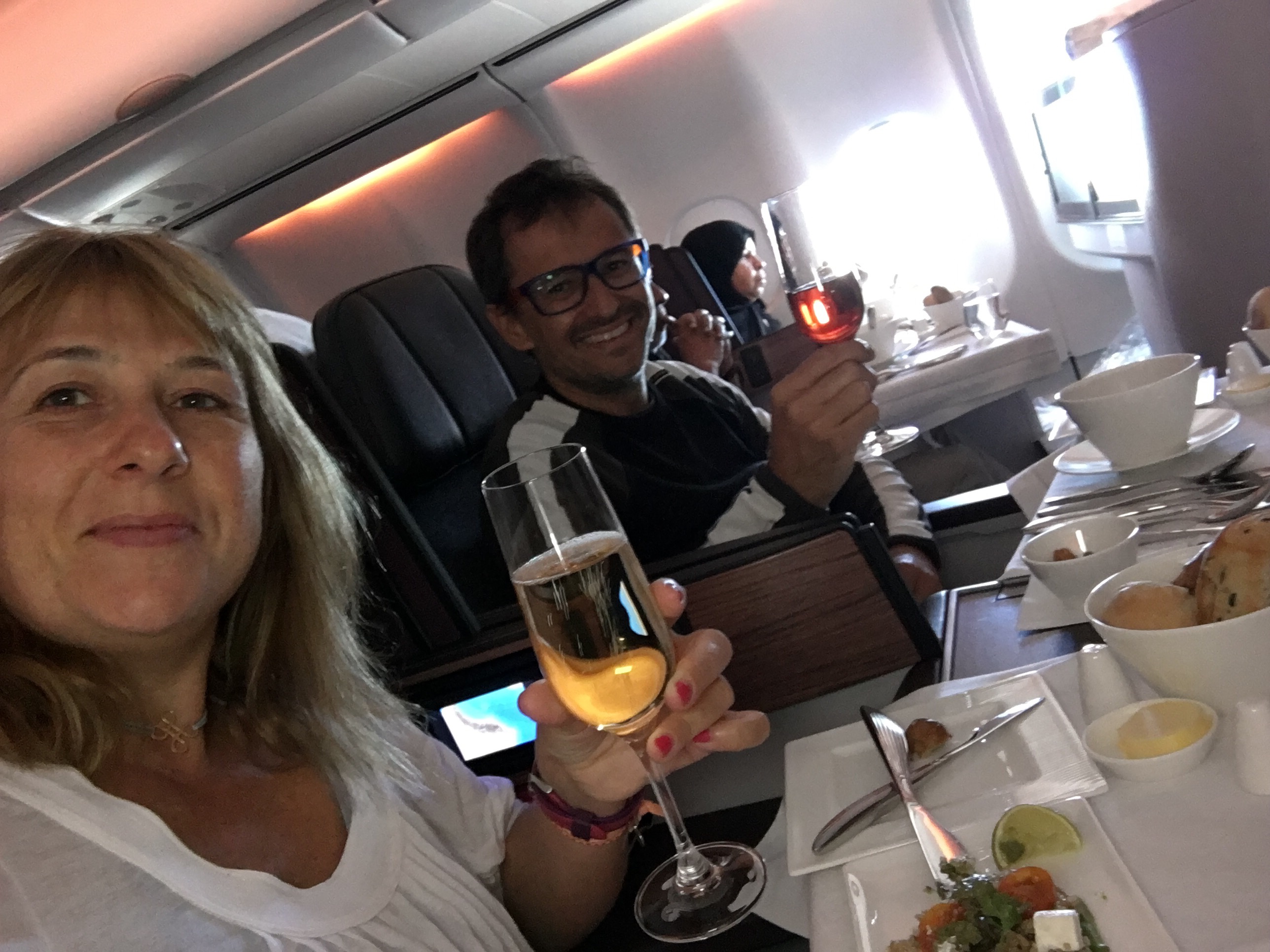 En el aeropuerto nos quejamos en el mostrador de Qatar Airways … y conseguimos un upgrade a business. Gracias Qatar!!!