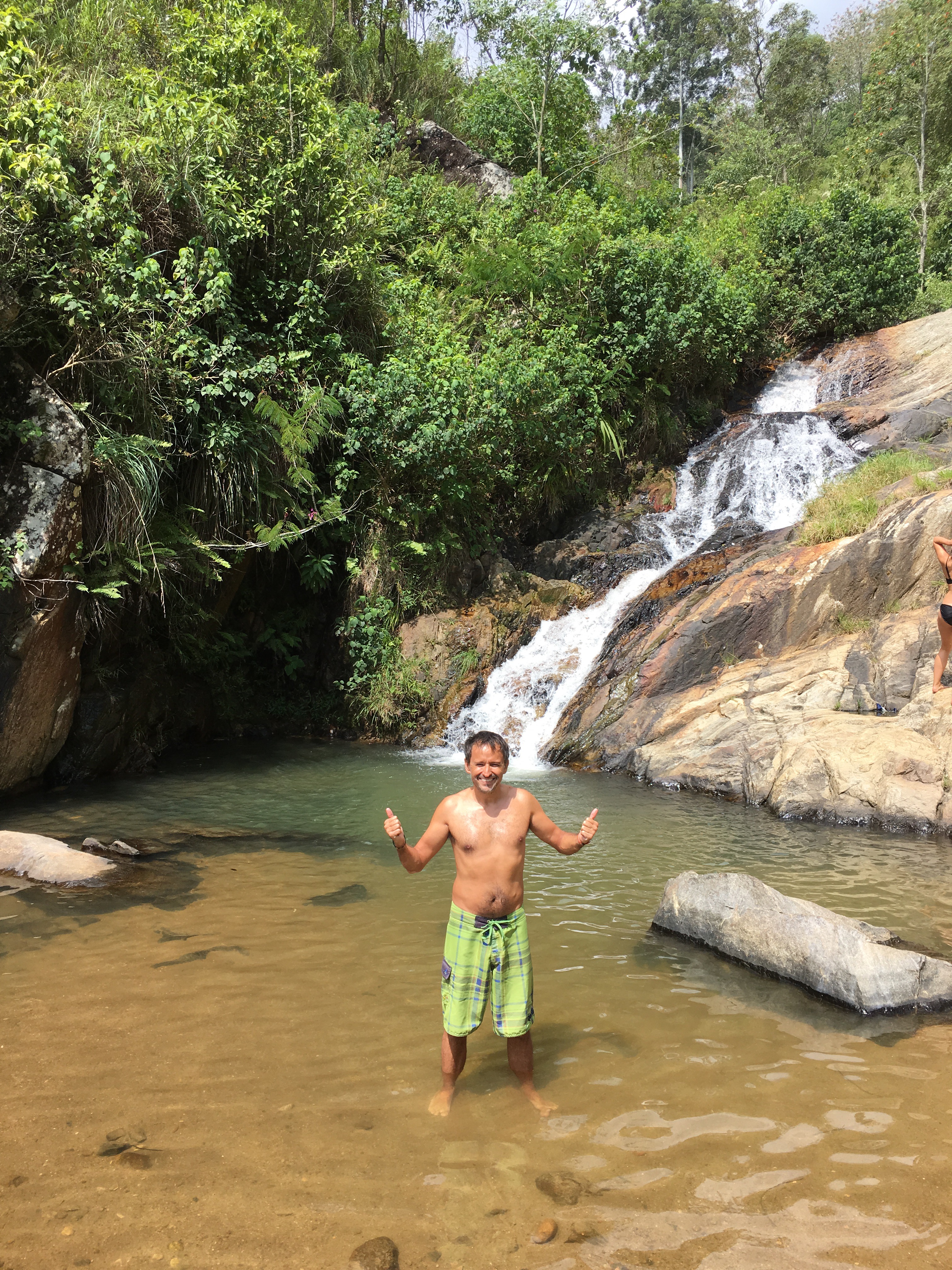 Para la primera excursión en Ella, pedimos consejo a Karen y nos reservan un tuk-tuk (1300 lkr medio día) y vamos a una cascada privada (en el guesthouse no saben el nombre) a unos 40 min. Nos bañamos con los locales. Genial!
