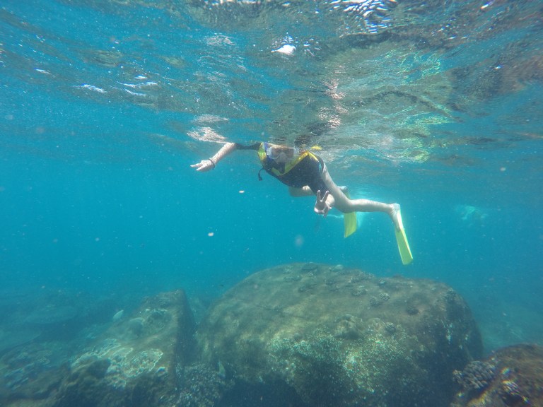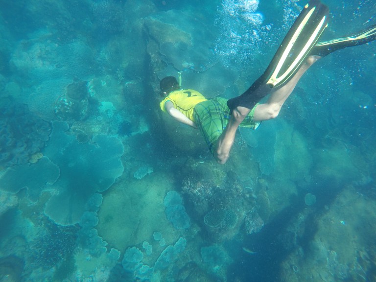 Hemos madrugado para salir de snorkel con la gente de Angel Diving, están en la playa y son super profesionales. Nos llevan a Angel Reef (cerca de Pigeon Island, que según nos cuentan está atestada de turistas y no lo recomiendan) para nadar casi 2 horas. Qué cantidad de peces de todos los colores, incluso hemos visto dos tiburones !!! Continuamos hasta la roca donde seguimos alucinando con tanto pez.
