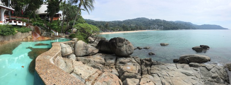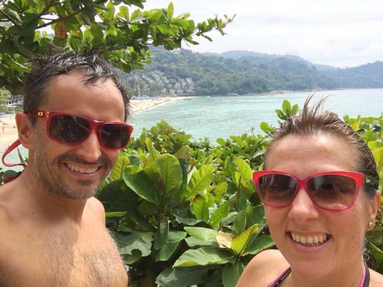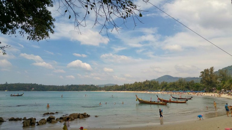 Pasamos el día en la playa de Kata (perfecta para familias) recuperándonos del largo viaje, comiendo pescando fresco y disfrutando de una agua de mar cristalina y templada.