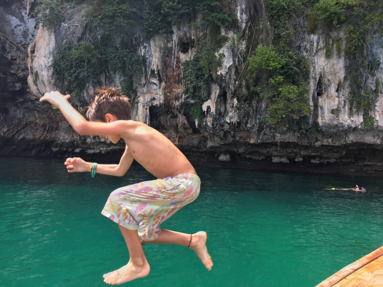 En el mismo hotel nos organizan la salida a las 4 islas, en un long tail boat privado. Coste: 3.150 THB por familia (los niños no pagan entrada para el parque marino). Esta vez nos han dejado pagar con tarjeta, vamos justos de efectivo.