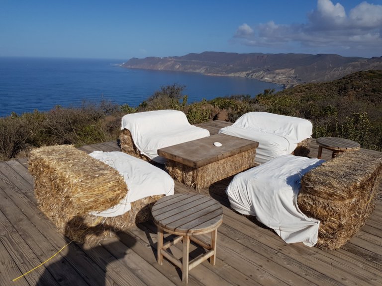 Consejo: Si tenéis ganas podéis subir corriendo hasta la zona de donde salen los buses para la puesta de sol. Continuad por la carretera cerrada y encontraréis esta mesa abandonada con vistas fantásticas.