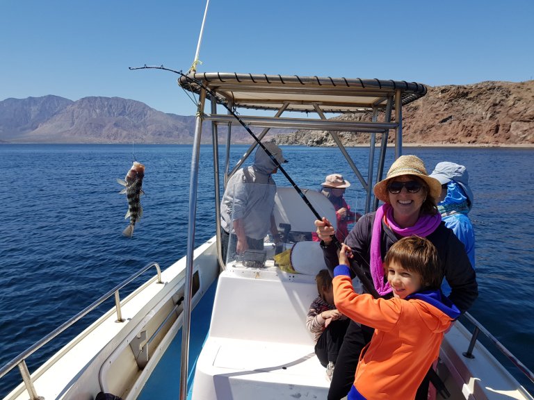 Tan privado que no encontramos ninguna barca en 4 horas. Navegamos la bahía, alucinamos con los paisajes y pescamos nuestra cena: una cabrilla buenísima 😋