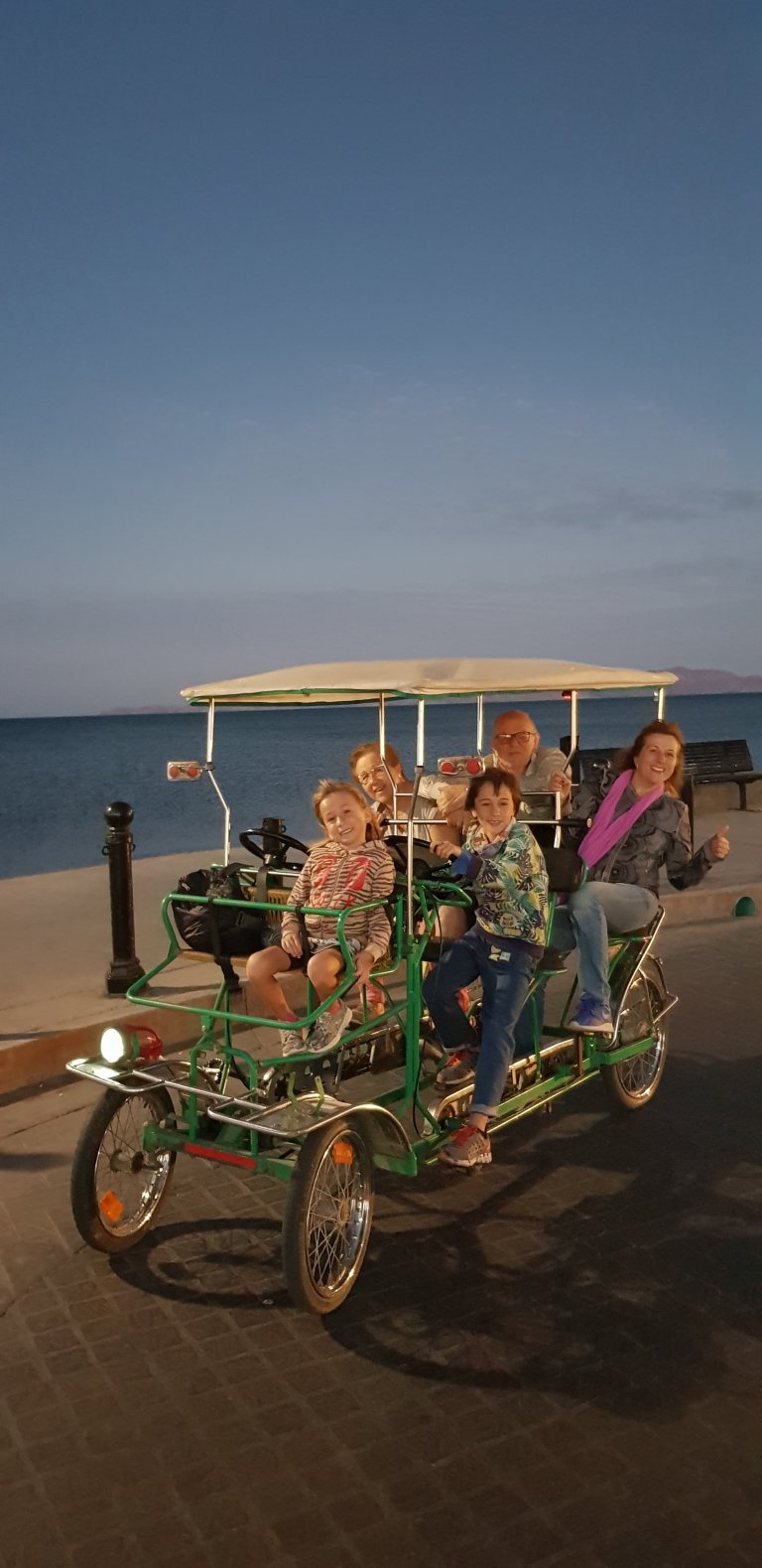 Por la noche alquilamos bicicleta y paseamos en familia por el malecón.