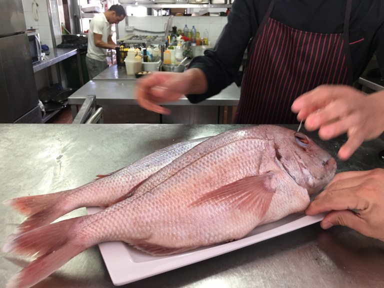Comemos en el Restaurante Azurro con unas vistas geniales a la playa y buena comida 👍