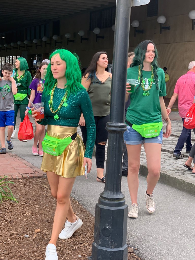 Y luego nos paseamos por la calle del río, que este fin de semana está inundada de gente vestida de verde por Saint Patrick’s Day. Merece mucho la pena venir este fin de semana.