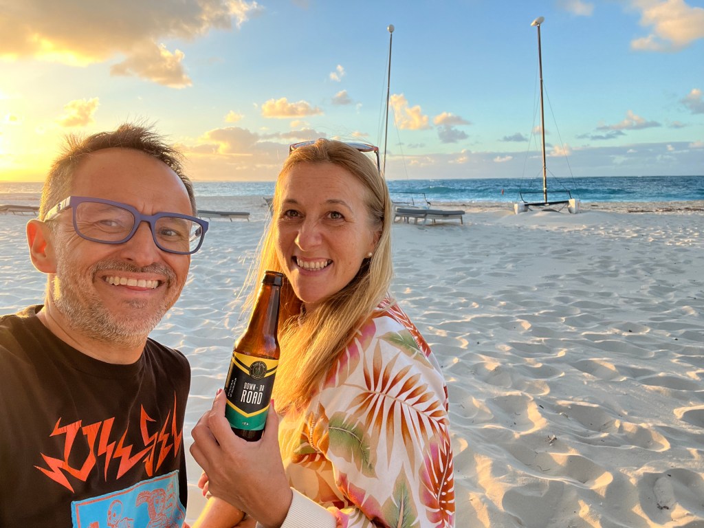 El otro es en la costa sur, es el Bugaloo y también está en primera línea de mar 👏 Aquí nos tomamos un Red Snapper y cerveza local.