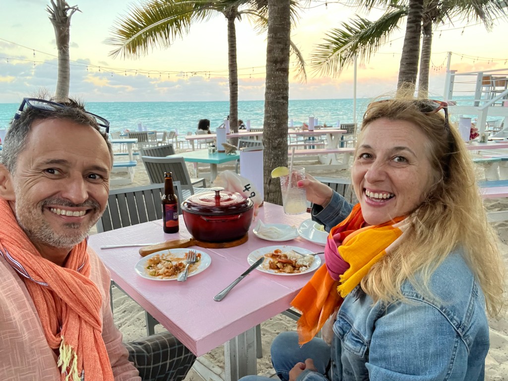 Comimos en dos lugares frente a la playa. El primero es el famoso Da Conch Shack 👍 Merece la pena llegar antes del atardecer para ver la puesta se sol. Pedimos el Pirate Pkt y estaba riquísimo 👌