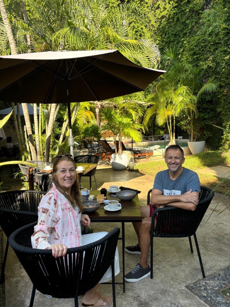 Desayunamos en el patio del hotel … hoy nos espera ruta.