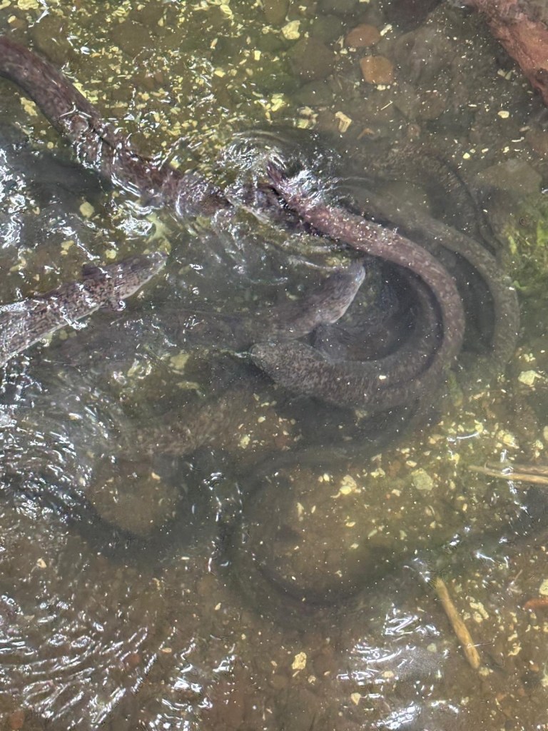 … continuamos a ver las famosas anguilas reales de ojos azules que viven en el río …