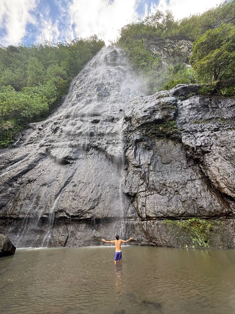El trekking es fácil, pero con mucha vegetación, troncos y 3 ríos a cruzar. En la cascada nos damos un buen baño y bajamos.