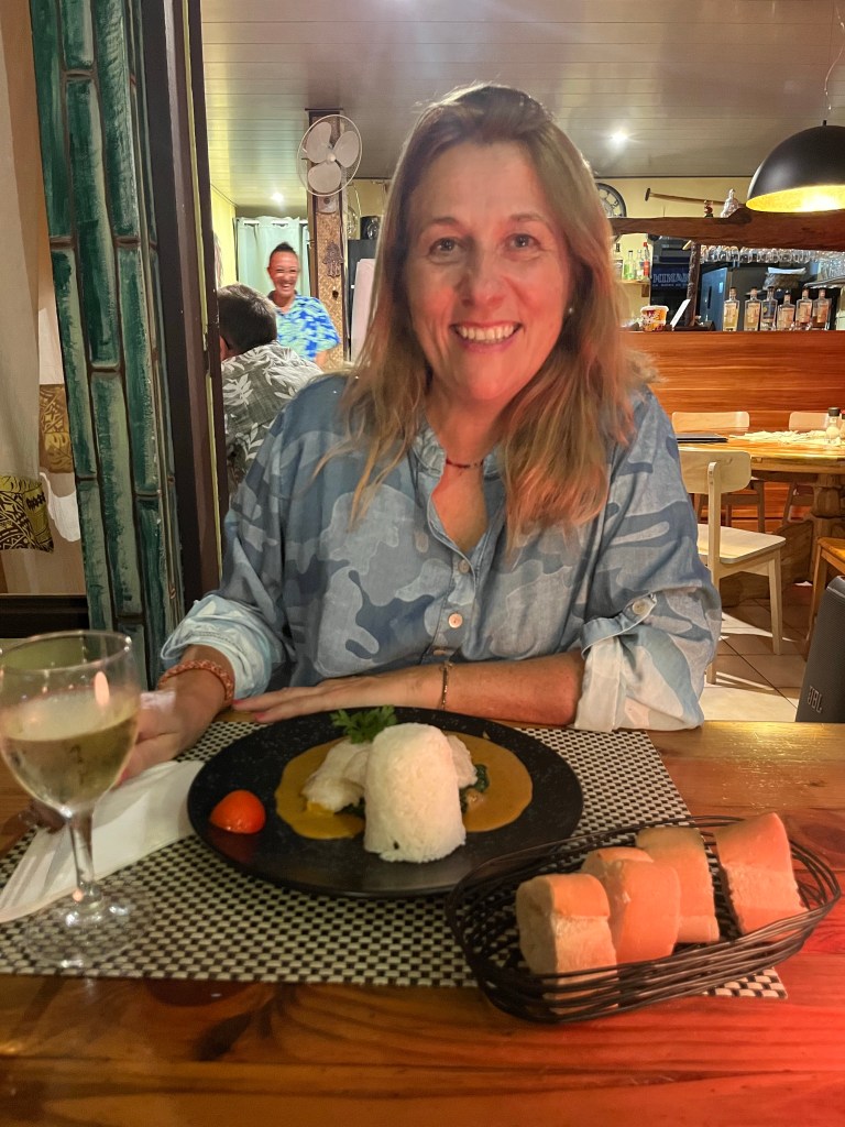 Recuperamos fuerzas en el restaurante Snack Mahana 👏 El plato típico es pescado con leche de coco 👌