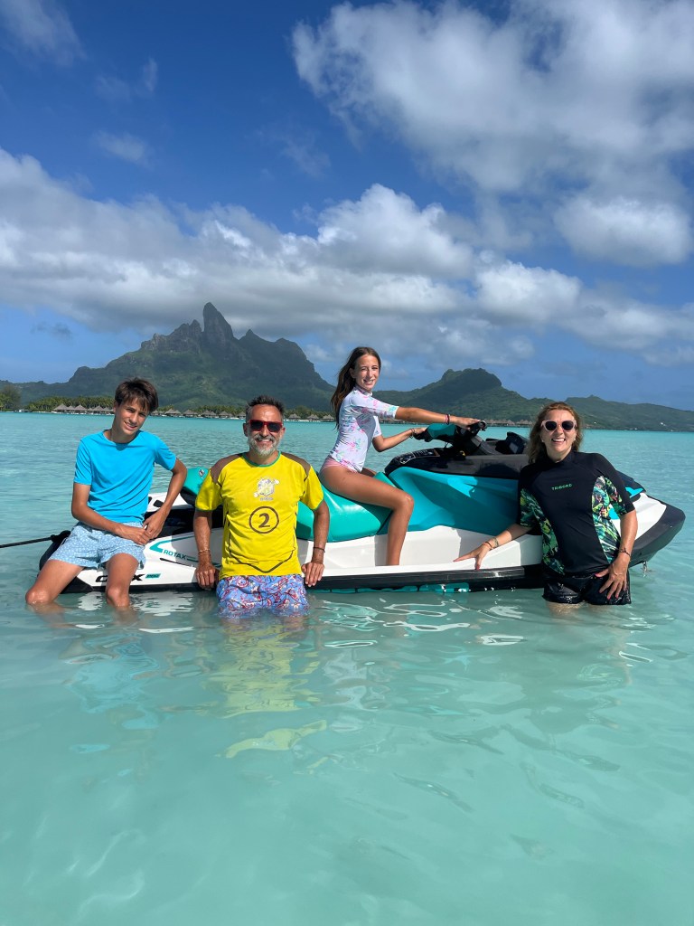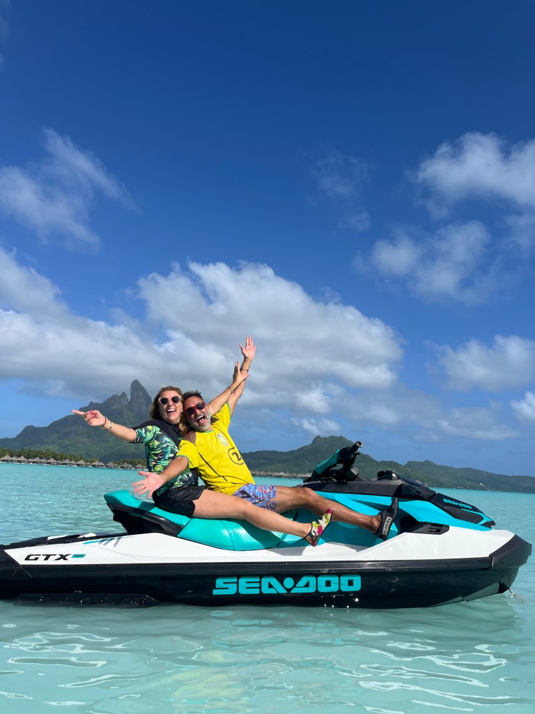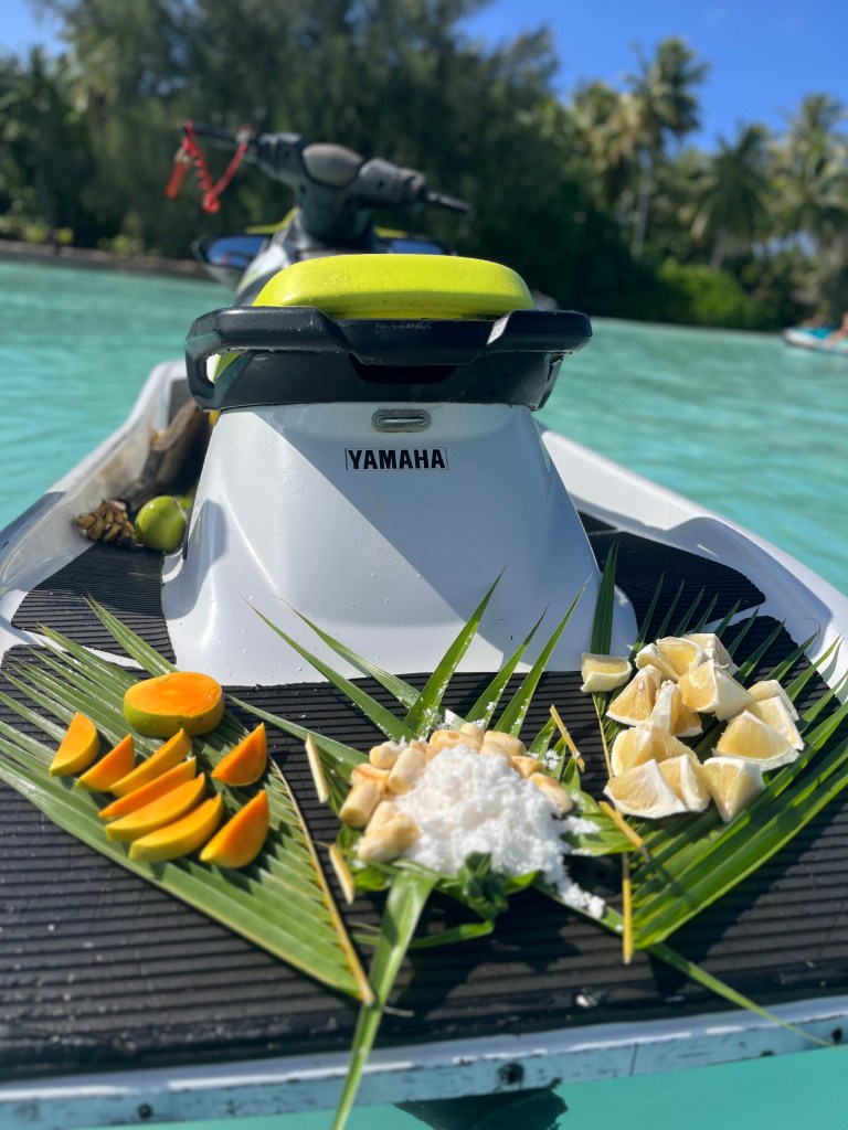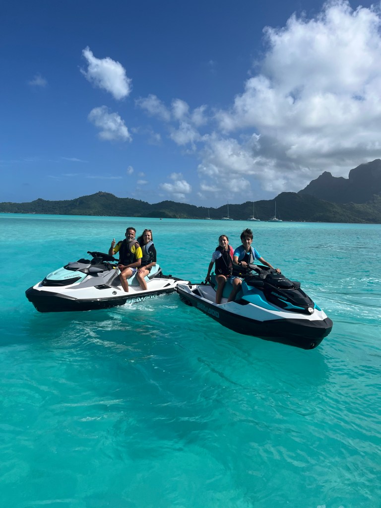 Hoy es día de actividad fuerte: expedición en moto de agua rodeando la isla de Bora Bora. Son 2 horas de adrenalina, con dos paradas para fotos y fruta. Una pasada 👏👏👏👏