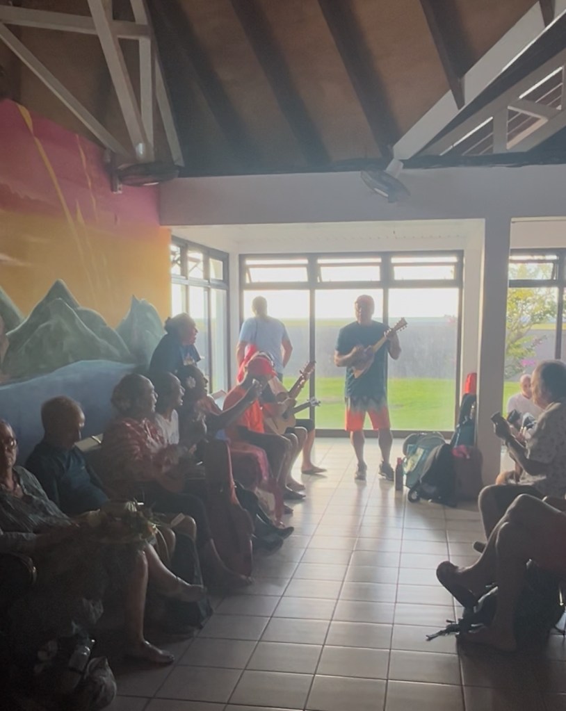 Por la tarde, vuelo de 25 minutos hasta la isla de Bora Bora. Queríamos llegar de día para disfrutar de la vista, pero el vuelo se retrasa. Aunque disfrutamos de un concierto improvisado en el aeropuerto.