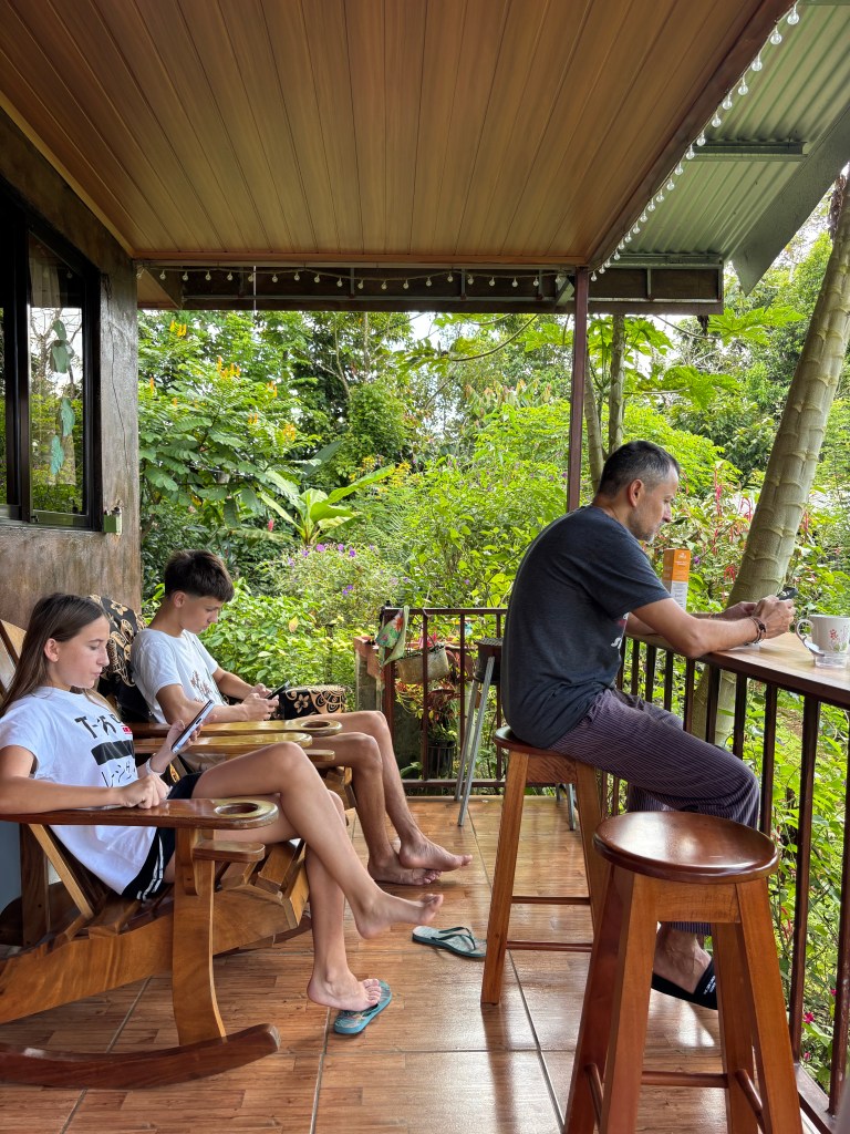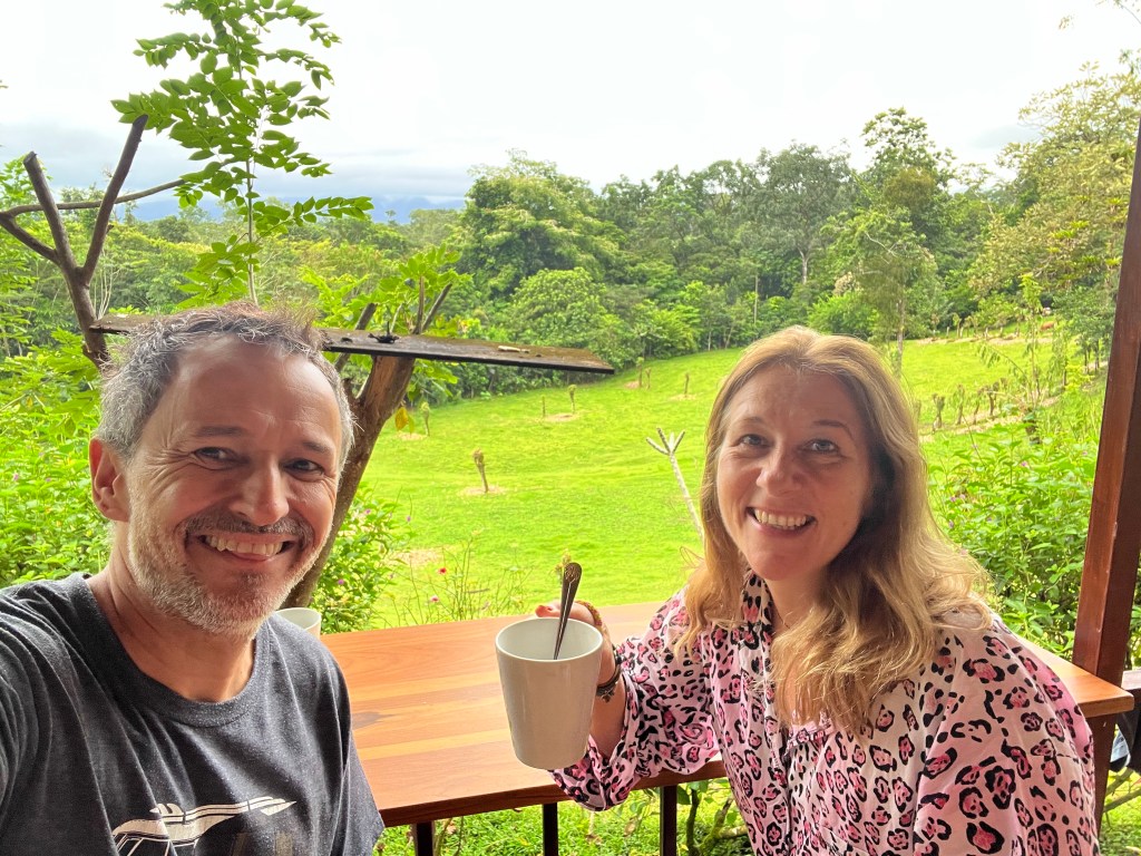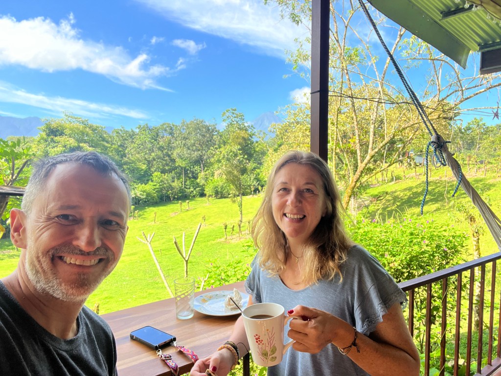 Desayunamos con el volcán Arenal de fondo ☕️ que hoy tenemos tres horas de viaje.