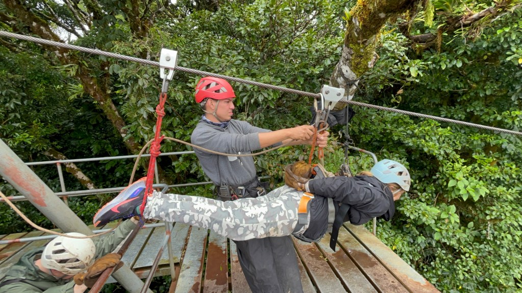 El día empieza súper tapado y lluvioso, con dudas de si podremos hacer la actividad. Pero finalmente podemos salir y disfrutar de 3 horas de tirolinas y saltos 👏👏👏 Hemos contratado la actividad con Monteverde Extremo Park 🤟🤟🤟