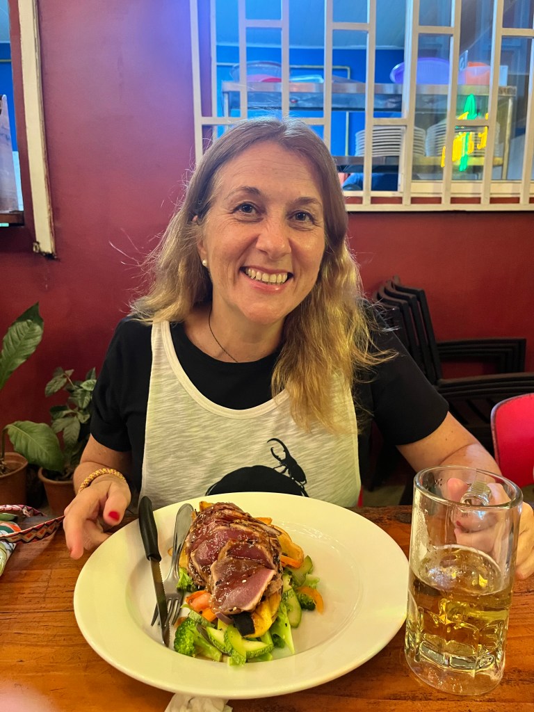 Por la noche salimos a cenar y acertamos 👍 Es el Restaurante De La Finca, en Quepos